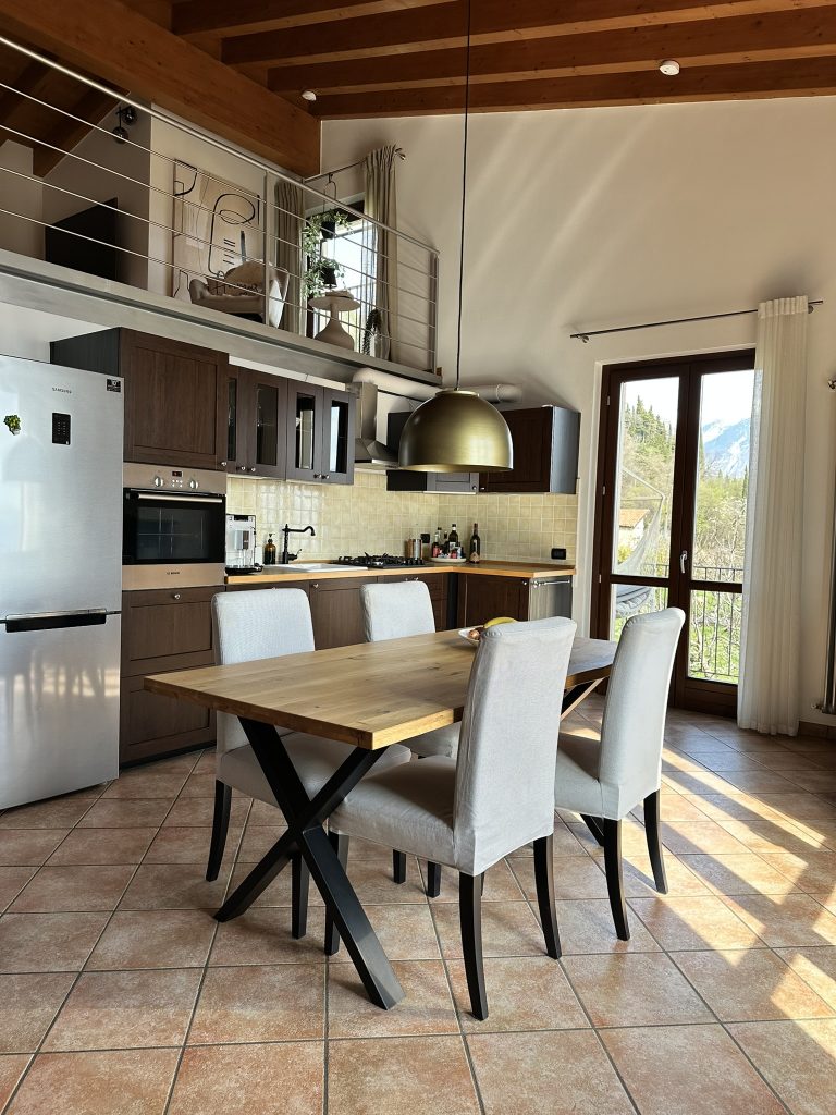 Mit zwei komfortablen Schlafzimmern, einem großzügigen Wohn- und Essbereich sowie einer Galerie, die als zusätzlicher Wohn- und Ruhebereich dient, bietet die Wohnung Platz für Ruhe, Erholung und gemeinsame Momente. Umgeben von der malerischen Natur des Gardasees ist dies der ideale Rückzugsort für Familien, Freunde oder Paare, die Komfort und Stil schätzen. Erlebe die Magie der Berge und die Nähe zum glitzernden See – dein Urlaub beginnt hier!